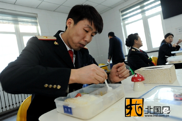 午餐時(shí)間到了,“牛三多”狼吞虎咽地吃完后返回售票崗位。他說(shuō),這樣可以讓其他職工多休息一會(huì)兒。