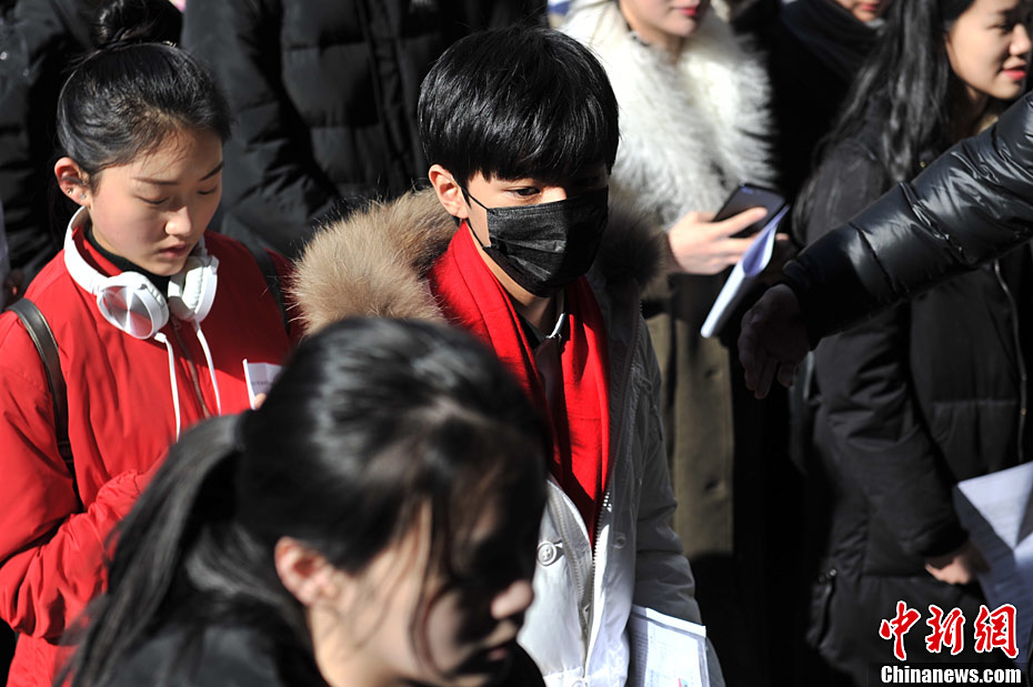 2月10日下午,人氣偶像TFBOYS中的王俊凱一身白色羽絨服,口罩遮面現身北京電影學院表演專業(yè)考場,眾多粉絲瘋狂圍堵。中新網記者 金碩 攝