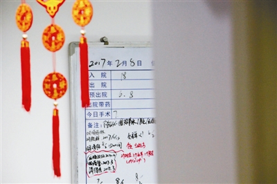 2月8日將要進(jìn)行的手術(shù)在白板上寫下的備忘錄