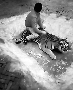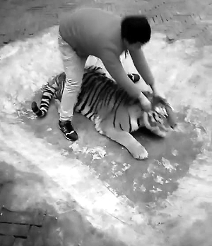 “與老虎待在一起很久,并不擔(dān)心老虎會攻擊或傷害,”他的語氣中透露著自信,在聊天中,他似乎并未意識到自己的行為存在虐待動物的嫌疑,他表示動物園也沒有反對這種行為,還表示類似的視頻每天都會拍。