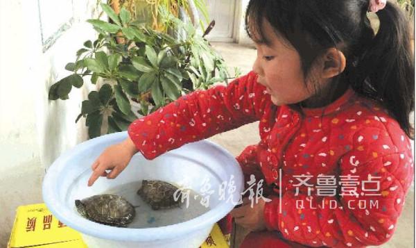 琦琦說,三只烏龜分別是爺爺、媽媽和孩子。