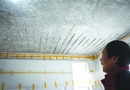 別墅天花板水泥脫落后,鋼筋暴露在外。 /晨報記者 張佳琪
