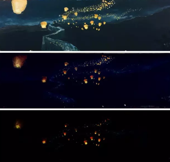 拉上窗簾,關(guān)上燈,畫中的孔明燈里似乎真的燃起了火光~~~