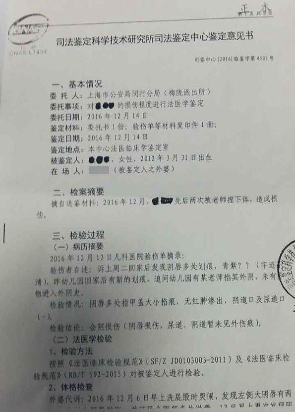 他4歲的女兒優(yōu)優(yōu)(化名)在上海閔行區(qū)曉苗幼兒園讀中班,去年12月給女兒洗澡時發(fā)現(xiàn),女兒有多處掐傷、抓傷痕跡。經(jīng)詢問,孩子稱傷痕是幼兒園朱老師(女)造成的。家長報警處理后,經(jīng)司法鑒定,優(yōu)優(yōu)會陰部確遭外力作用受傷,構(gòu)成輕微傷。