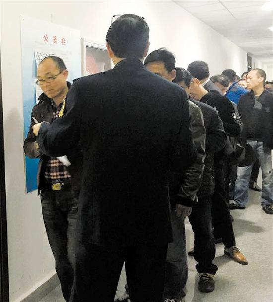 司機(jī)排隊(duì)入場(chǎng)考試。