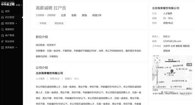 子虛烏有的單位和崗位,這樣的招聘信息如何能夠發(fā)布?8日下午,北青報記者以餐飲企業(yè)經(jīng)營者身份,嘗試在多家網(wǎng)站發(fā)布“高薪招聘扛尸員”信息。體驗發(fā)現(xiàn),無需提交企業(yè)營業(yè)執(zhí)照,也沒有經(jīng)過任何審核,即可發(fā)布上述招聘,并且可以留下任意電話號碼作為聯(lián)系電話。