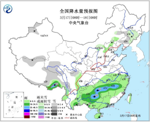 中新網(wǎng)3月17日電 據(jù)中央氣象臺網(wǎng)站消息,受南支槽東移加強(qiáng)影響,預(yù)計(jì)17日至20日,江南、華南等地將有一次較強(qiáng)降水天氣過程,雨量普遍在中到大雨,其中,廣西大部、廣東西部、湖南中部、江西中北部等地的部分地區(qū)有大到暴雨。