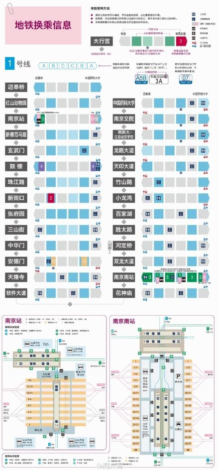 這是東南大學85后青年教師陶岸君花了一年多時間調(diào)查完成的。表中不僅用不同顏色標注了南京地鐵的不同線路,每個車站,還標注了哪個車廂離換乘口和出站閘機最近,哪個車門能直達自動扶梯無障礙電梯和洗手間,站與站之間大概行駛時間……