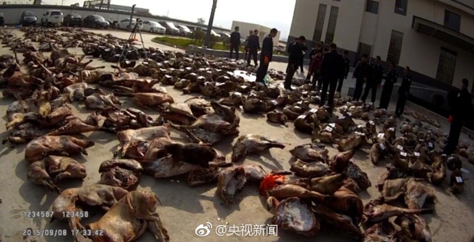 甘肅、陜西公安近日破獲一起非法獵捕、販賣野生動物案,查獲果子貍、野豬、赤麂等14種1025只,其中瀕危野生動物鬣(liè)羚、斑羚共5只。不法分子偷獵野生動物后,冷庫藏尸,定期向四川等地販賣。(央視記者張鵬軍)