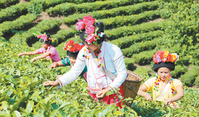 圖為大益集團巴達生產(chǎn)基地,布朗族群眾開采春茶。