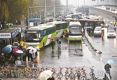 “前幾天把公交車站圍住了。”一位乘車的市民回憶,大量的共享單車亂停亂放導(dǎo)致公交車進(jìn)站、出站都非常困難,兩條出站車道被停放的自行車“蠶食”掉一條,僅剩的一條窄窄的車道讓公交車進(jìn)出站很費(fèi)勁。有些公交車甚至無(wú)法進(jìn)站,只能在站臺(tái)區(qū)域外的正常車輛行駛區(qū)域停留,“有的公交司機(jī)當(dāng)時(shí)可著急了!