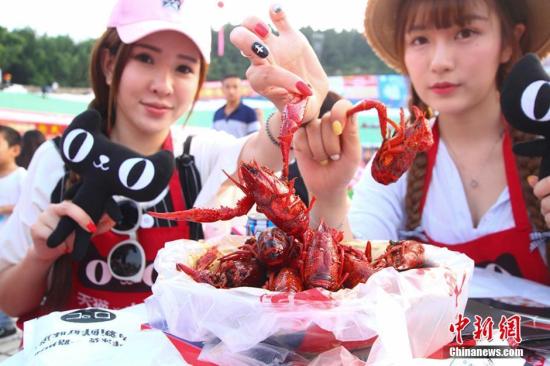 資料圖:網(wǎng)絡(luò)美女主播現(xiàn)身龍蝦宴,線上直播吃龍蝦。 李珂 攝