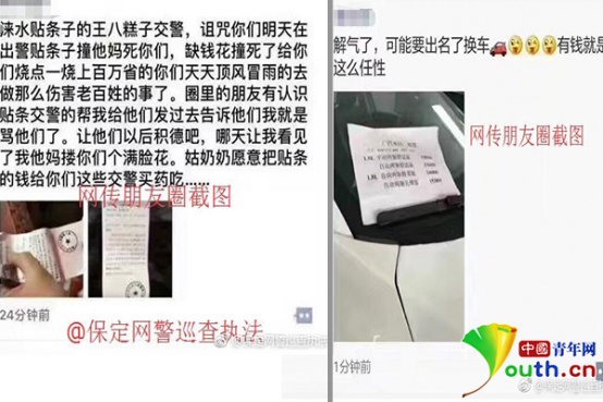 原標題:河北保定一司機違停受處罰后發(fā)朋友圈詛咒侮辱交警被行拘