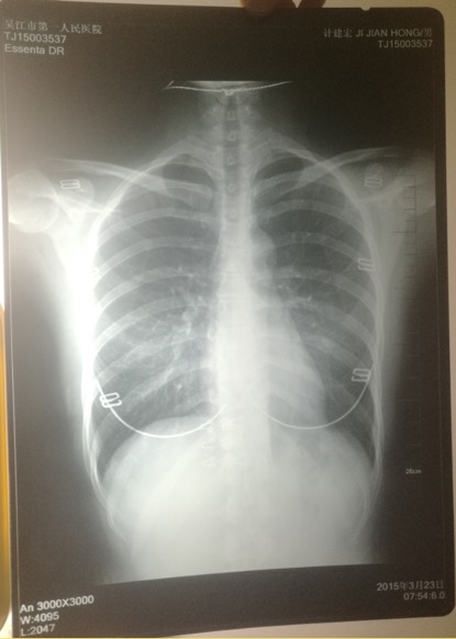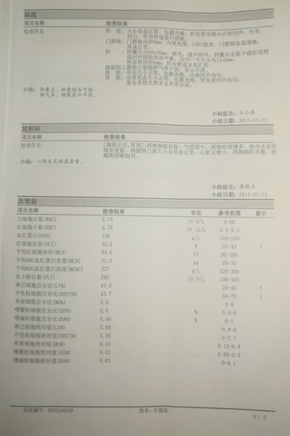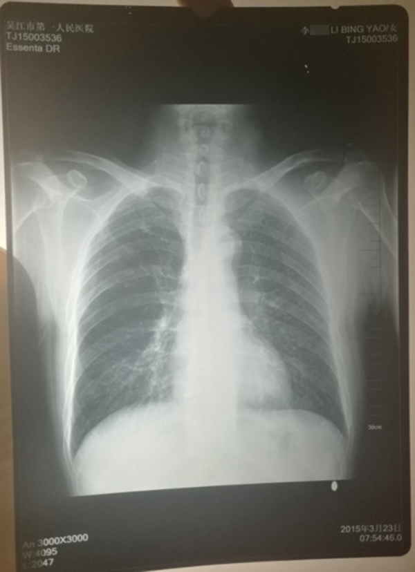 計(jì)建宏2015年3月23日在蘇州市吳江區(qū)第一人民醫(yī)院的體檢報(bào)告顯示,其放射科檢查的結(jié)果小結(jié)為“心肺未見明顯異!。