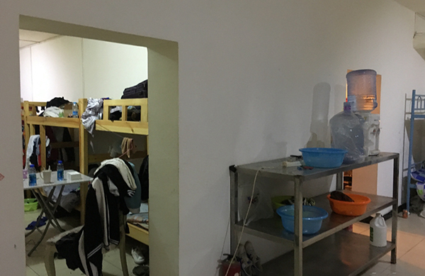 隨后記者跟隨業(yè)主前往這個(gè)“地下小區(qū)”一探究竟,從地下一層的停車場(chǎng)順著唯一一條狹窄的樓梯走下去,通過(guò)巨大的防空門后豁然開(kāi)朗,“另一個(gè)世界”展現(xiàn)在記者眼前,防空洞被改造成了群租房,每個(gè)房間都打上了隔斷,分成了無(wú)數(shù)個(gè)小間,有的房間僅能放下一張單人床,稍微大點(diǎn)的隔斷間變成了附近酒吧的集體宿舍,放著十幾張上下鋪床位。在這里居住的一位酒吧員工告訴記者,這是公司給安排的,他們也不想住地下室,并表示“整個(gè)北京住地下室的不止這一家。”