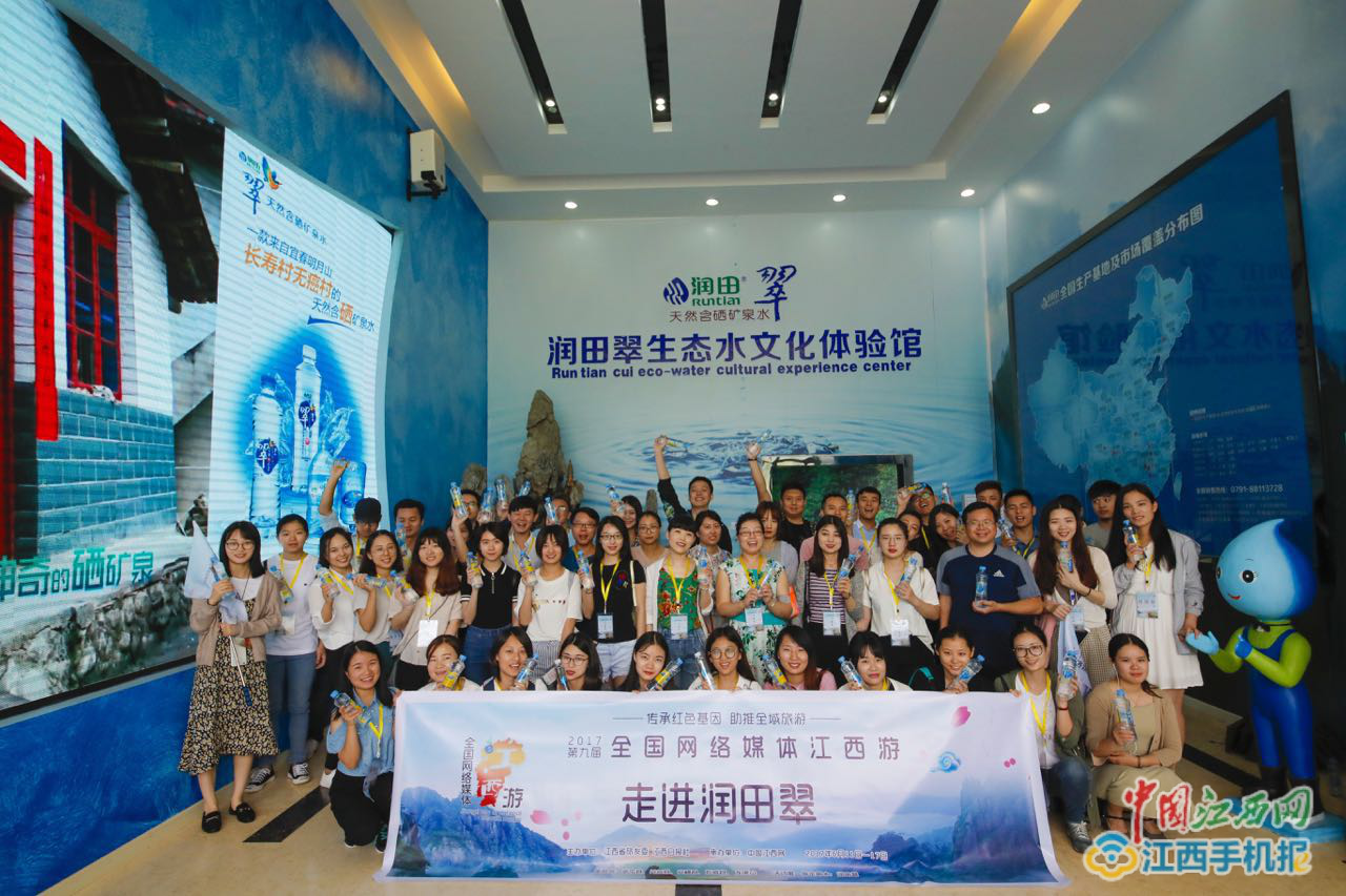 中國江西網(wǎng)移動采編訊 記者李志強報道:明月山下溫湯泉水,因富硒溫泉而聲名鵲起,每年都吸引大量游客前來。6月14日,來自全國近80家主流網(wǎng)絡(luò)媒體組成的“2017第九屆全國網(wǎng)絡(luò)媒體江西游”采風團,來到潤田翠水源地溫湯鎮(zhèn),探訪遠近聞名的溫湯溫泉古井,以及潤田翠生態(tài)水文化體驗館。