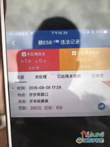 中國(guó)江西網(wǎng)訊 記者吳際宇報(bào)道:“開(kāi)車挖鼻屎也會(huì)被扣分,我都不知道這是真是假!7月10日,家住紅谷灘的邱女士向中國(guó)江西網(wǎng)曝料熱線0791—86849275反映,今天在刷朋友圈時(shí)發(fā)現(xiàn)一張奇葩的交通違法記錄截圖,并且隨后不少朋友都轉(zhuǎn)發(fā)了截圖。