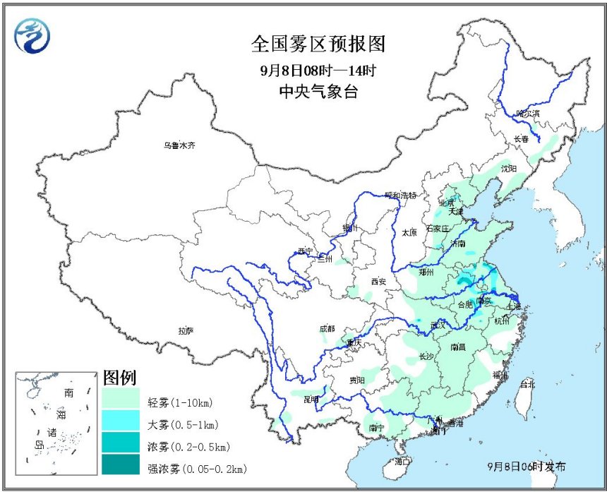 人民網(wǎng)北京9月8日電 據(jù)中央氣象臺網(wǎng)站消息,8日早晨至上午,安徽、江蘇中北部、山東南部、河北中部、北京東南部等地的部分地區(qū)有能見度不足1km的大霧,局地能見度將不足500米。