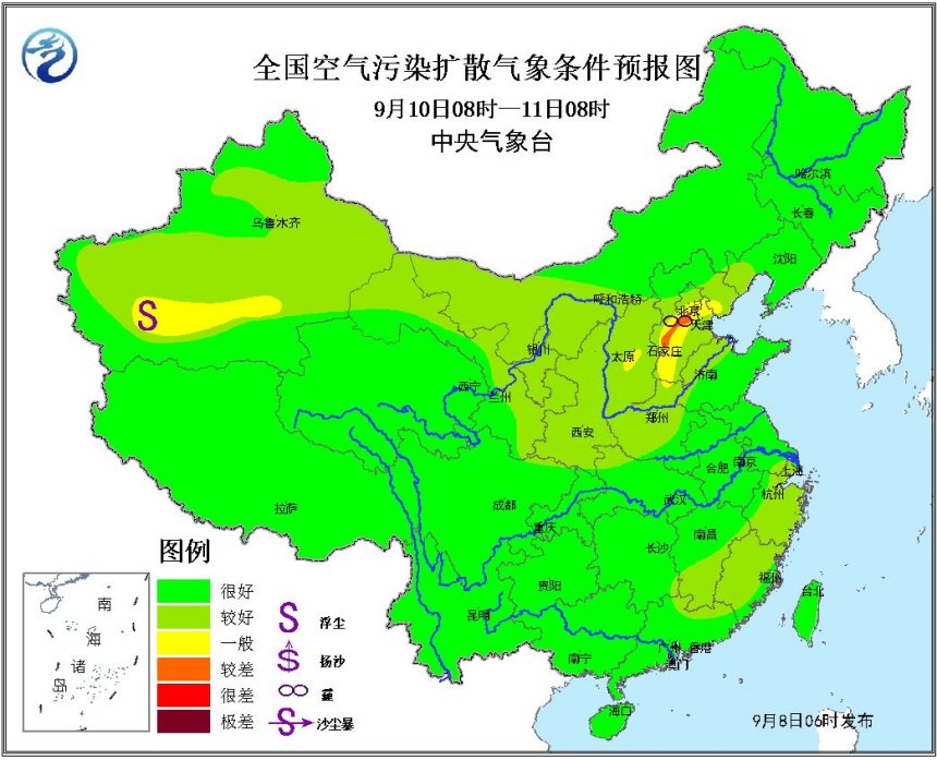8日至10日,京津冀部分地區(qū)大氣擴散條件逐漸轉(zhuǎn)差,有輕至中度霾天氣;夜間至早晨時段部分地區(qū)有霧。10日夜間起,受冷空氣影響,上述地區(qū)大氣擴散條件逐漸轉(zhuǎn)好。