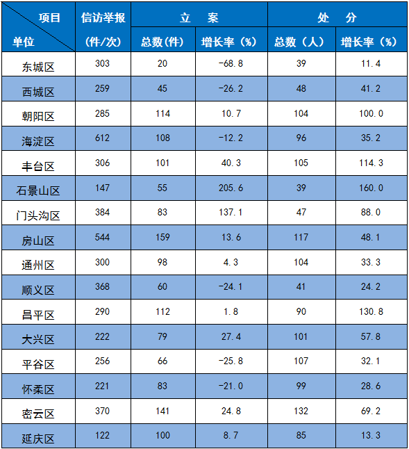 2017年1至8月北京市各區(qū)紀(jì)檢監(jiān)察機(jī)關(guān)紀(jì)律審查情況表
