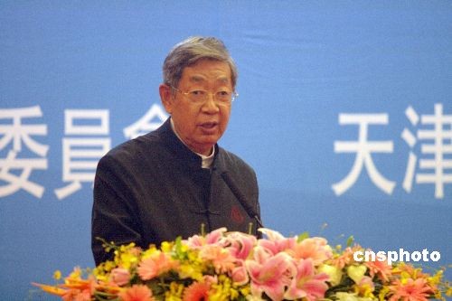 10月14日,出席第三屆海峽兩岸企業(yè)發(fā)展與合作暨天津?yàn)I海新區(qū)開(kāi)發(fā)開(kāi)放高層論壇的全國(guó)人大常委會(huì)原副委員長(zhǎng)許嘉璐說(shuō),現(xiàn)在海峽兩岸是“早春三月”,暖了還涼;但是再?zèng),不?huì)是冬天,只會(huì)越來(lái)越暖。 中新社發(fā) 田齊 攝