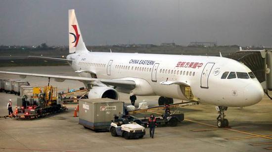 1月20日東方航空班機(jī)飛抵桃園機(jī)場(chǎng)。(圖:中時(shí)電子報(bào))