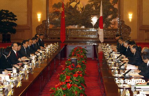 12月28日,中國(guó)國(guó)務(wù)院總理溫家寶在北京人民大會(huì)堂與來訪的日本首相福田康夫舉行會(huì)談。 中新社發(fā) 盛佳鵬 攝