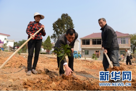 吉州區(qū)興橋鎮(zhèn)飛來(lái)石村農(nóng)民在種植井岡蜜柚(張建明、黃競(jìng)妍攝)