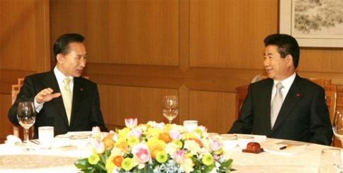 中新網(wǎng)12月29日電 韓國(guó)總統(tǒng)盧武鉉和總統(tǒng)當(dāng)選人李明博于28日晚在青瓦臺(tái)共進(jìn)晚餐,討論了政權(quán)交接問(wèn)題等國(guó)政現(xiàn)案。盧總統(tǒng)和李明博的會(huì)面是在總統(tǒng)選舉結(jié)束后第9天。