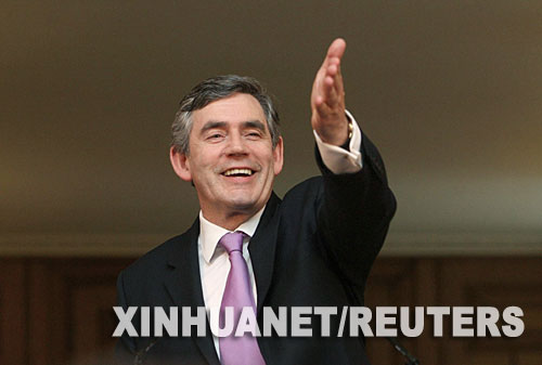 資料圖片:7月23日,英國(guó)新任首相布朗在倫敦的唐寧街舉行他出任首相后的第一次記者招待會(huì)。新華社/路透