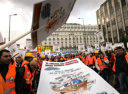 2月13日,希臘爆發(fā)全國大罷工,全國交通運(yùn)輸和公共服務(wù)陷于全面癱瘓。