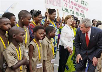 布什計(jì)劃6天訪問貝寧、坦桑尼亞、盧旺達(dá)、加納和利比里亞5個(gè)非洲國(guó)家。他此行旨在提高他的政績(jī),以及凸顯美國(guó)解決非洲區(qū)域糾紛的努力、提倡民主改革以及協(xié)助消滅艾滋病與瘧疾。 |