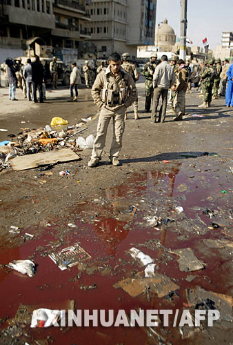 2月1日,伊拉克警察和士兵在首都巴格達(dá)市中心的爆炸現(xiàn)場檢查。