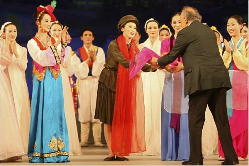 2月25日,朝鮮在萬壽臺(tái)藝術(shù)劇場(chǎng)舉辦盛大演出歡迎美國(guó)紐約愛樂樂團(tuán)來訪。