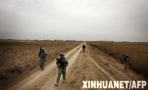 3月10日,美軍士兵在伊拉克迪亞拉省的一個村莊巡邏。駐伊拉克美軍當(dāng)日宣布,5名美軍士兵當(dāng)天在巴格達(dá)遭遇炸彈襲擊身亡。 新華社/法新