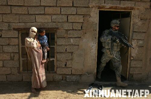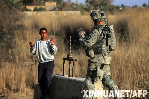 3月8日,一名駐伊美軍士兵在伊拉克的迪亞拉省搜查當(dāng)?shù)鼐用褡》。新華社/法新