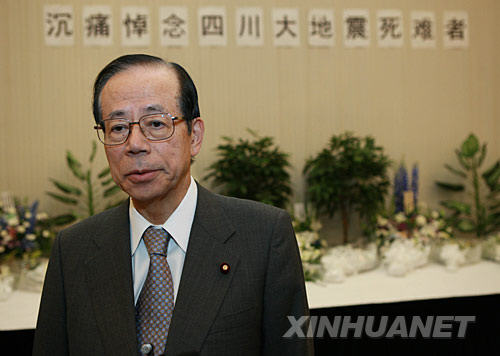 5月21日,在日本首都東京中國(guó)駐日本大使館,日本首相福田康夫吊唁中國(guó)四川汶川大地震的遇難者。新華社記者任正來(lái)攝