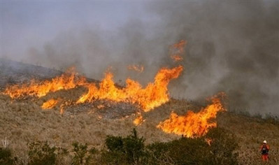 據(jù)悉,連日來,大約有5000到6000次閃電襲擊加州。施瓦辛格稱,22日晚上,他聽說有520個地方發(fā)生野火火災(zāi),到了23日早上,這個數(shù)字變成了700個,截止到記者發(fā)稿,加州發(fā)生火情的地方達(dá)到了842處。 |