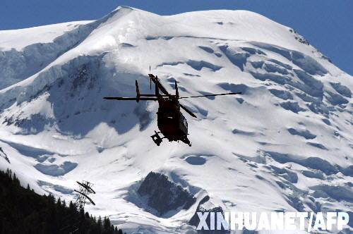 8月24日,一架救援直升機在法國沙莫尼山谷搜救雪崩中失蹤的登山者。歐洲最高峰勃朗峰在當日凌晨發(fā)生雪崩,目前造成至少8人受傷,10人下落不明。 新華社/法新