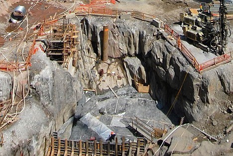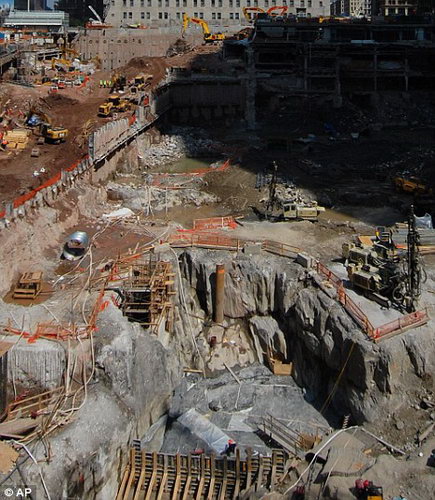圖片中下部的“壺穴”證明了世貿中心的雙子塔屹立在曾經是冰河時期的冰河上