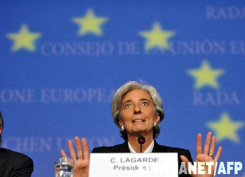 10月7日,在盧森堡,歐盟輪值主席國法國經(jīng)濟(jì)、財政與就業(yè)部長克里斯蒂娜·拉加德在歐盟27國財長月度例會結(jié)束后召開新聞發(fā)布會。歐盟成員國財政部長當(dāng)日同意大幅提高各國對儲戶存款的最低擔(dān)保額度,以幫助穩(wěn)定金融市場和保護(hù)儲戶利益。 新華社/法新 |
