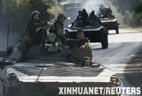 10月8日,俄羅斯維和部隊(duì)士兵乘坐裝甲車撤離南奧塞梯附近的一個(gè)哨所。俄羅斯維和部隊(duì)司令庫(kù)拉赫梅托夫8日宣布,俄維和部隊(duì)已開始從南奧塞梯沖突“安全區(qū)”的6個(gè)哨所撤出,撤離行動(dòng)將于當(dāng)天結(jié)束。 新華社/路透