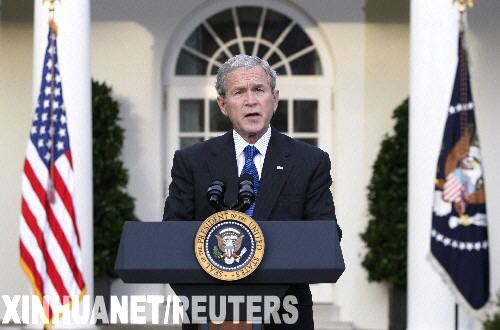 圖為10月14日,美國(guó)總統(tǒng)布什在華盛頓白宮發(fā)表講話。布什當(dāng)天宣布,作為7000億美元救市計(jì)劃的具體舉措,政府將動(dòng)用其中的2500億美元直接購(gòu)買金融機(jī)構(gòu)股份,以此促進(jìn)金融市場(chǎng)恢復(fù)運(yùn)轉(zhuǎn)。 新華社/路透