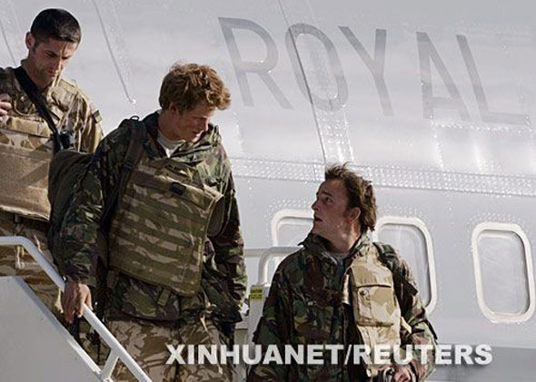 哈里現(xiàn)年24歲。他去年冬天秘密前往阿富汗南部赫爾曼德省作戰(zhàn),因行蹤今年2月遭媒體泄露,被英國軍方提前調(diào)回國內(nèi)。 |