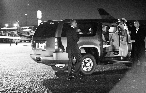 10月25日傍晚,新墨西哥州,結(jié)束了一天的競(jìng)選宣傳活動(dòng),奧巴馬準(zhǔn)備乘車奔向下一個(gè)起點(diǎn)。