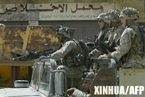 資料圖片:幾名美國海軍陸戰(zhàn)隊士兵在伊拉克費盧杰街頭乘車巡邏。 新華社/法新