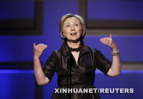 11月10日,美國(guó)民主黨國(guó)會(huì)參議員希拉里·克林頓在紐約“2008年度魅力女性”頒獎(jiǎng)儀式上發(fā)表感言。當(dāng)日,希拉里獲得由美國(guó)著名時(shí)尚雜志《魅力》評(píng)選的“年度魅力女性”稱號(hào)。 新華社/路透