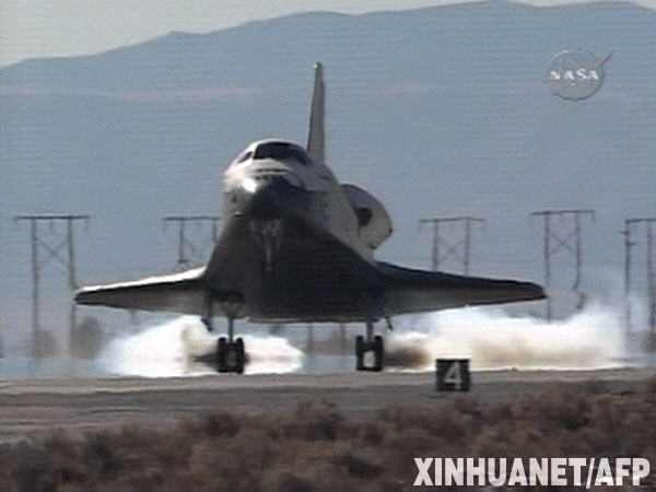 美國西部時(shí)間11月30日13點(diǎn)25分左右(北京時(shí)間12月1日凌晨5時(shí)25分左右),美國“奮進(jìn)”號(hào)航天飛機(jī)載著7名宇航員安全降落在加利福尼亞州愛德華茲空軍基地(美國宇航局電視畫面)。由于天氣原因,“奮進(jìn)”號(hào)著陸地點(diǎn)由原定的佛羅里達(dá)州肯尼迪航天中心改為加州愛德華茲空軍基地。 新華社/法新
