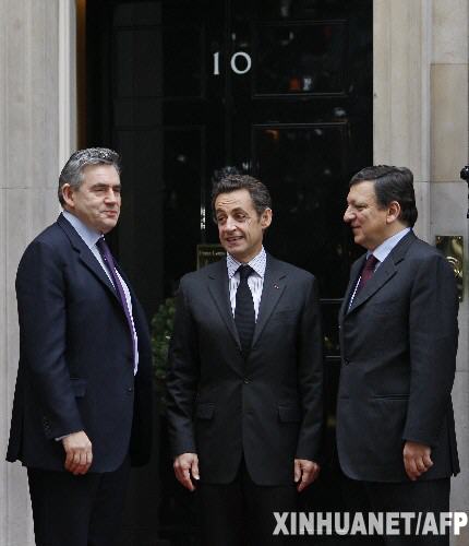 2008年12月9日 歐洲領(lǐng)導(dǎo)人呼吁推動(dòng)簽署世貿(mào)協(xié)定刺激經(jīng)濟(jì)復(fù)蘇 12月8日,英國首相布朗(左)、法國總統(tǒng)薩科齊(中)和歐盟委員會(huì)主席巴羅佐(右)在倫敦首相官邸前合影。三方當(dāng)日舉行經(jīng)濟(jì)峰會(huì),一致同意通過推動(dòng)簽署世界貿(mào)易協(xié)定向貿(mào)易保護(hù)主義發(fā)出信號(hào),以應(yīng)對全球金融危機(jī)。 新華社/法新