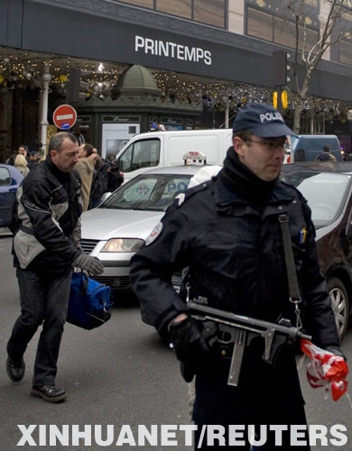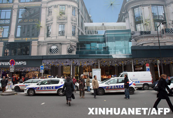 12月16日,法國警察在首都巴黎市中心的春天百貨商場前維持秩序。 新華社/路透